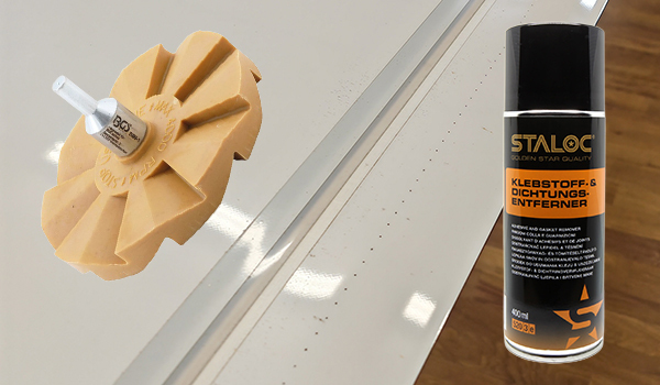 - mit dem [Folienradierer] die dicke Klebeschicht grob entfernen bzw. verschmieren